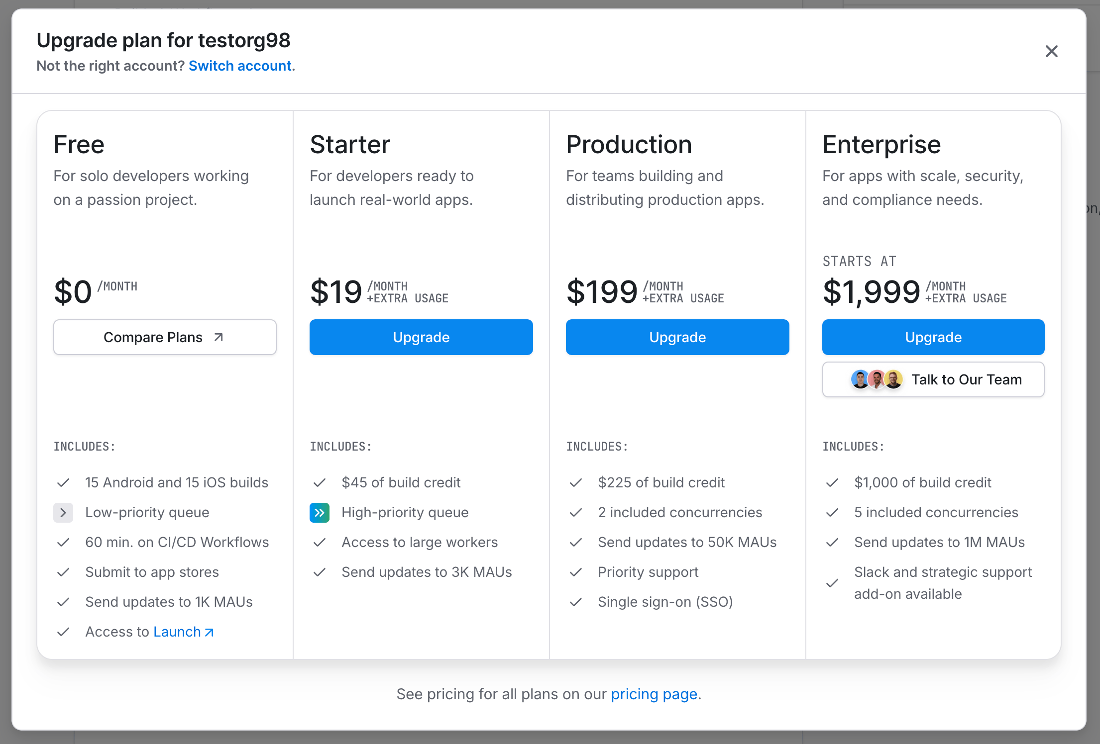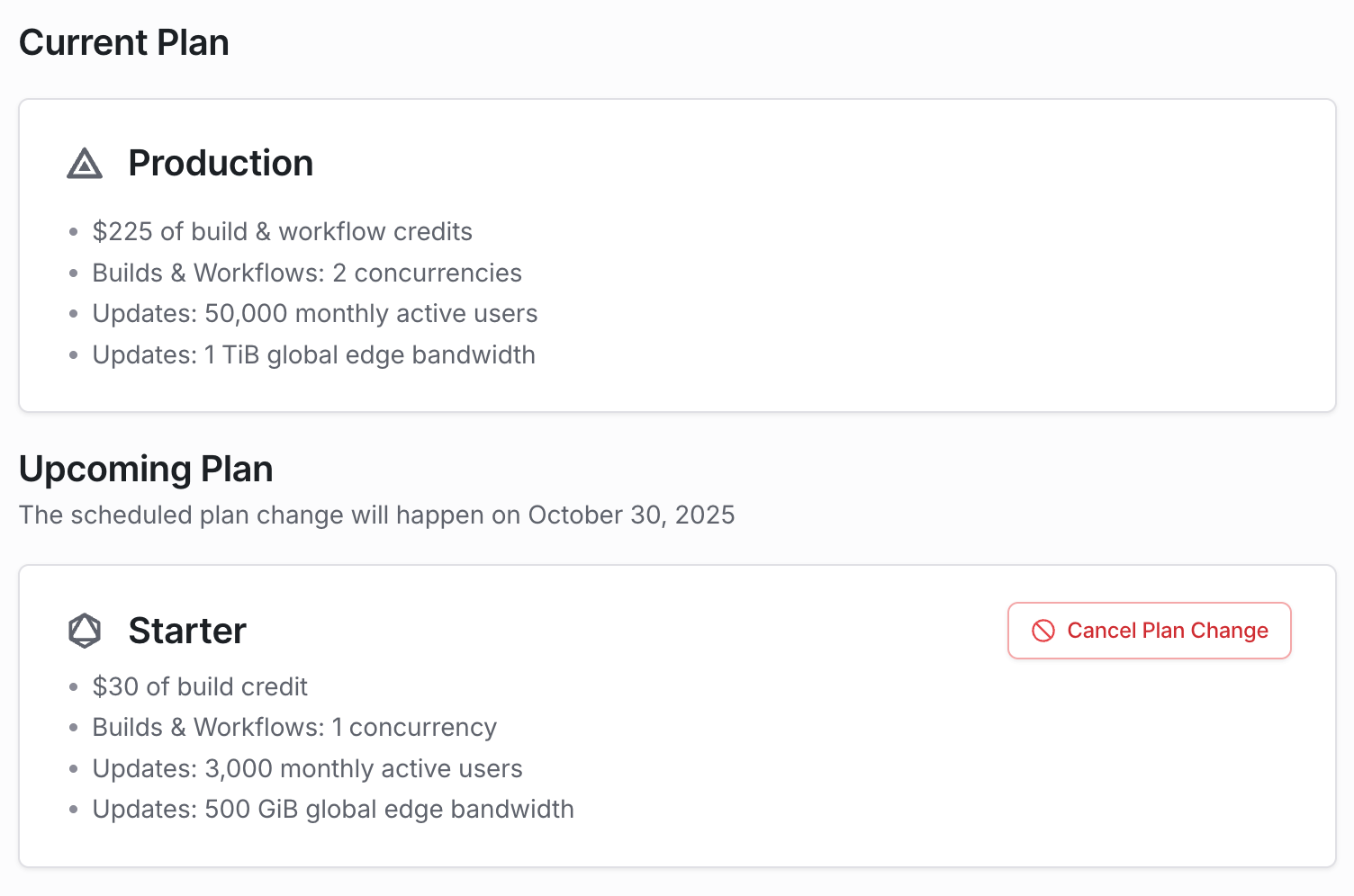 Learn how to update, downgrade, or cancel your Expo account's plans and manage billing details.